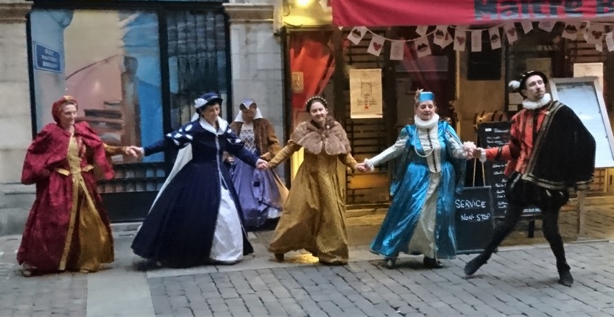 Répondant à l’aimable invitation du pennonage de Ménival, la troupe de Baraban égaya la visite par quelques danseries Renaissance, en parfait accord avec l’architecture préservée du quartier.