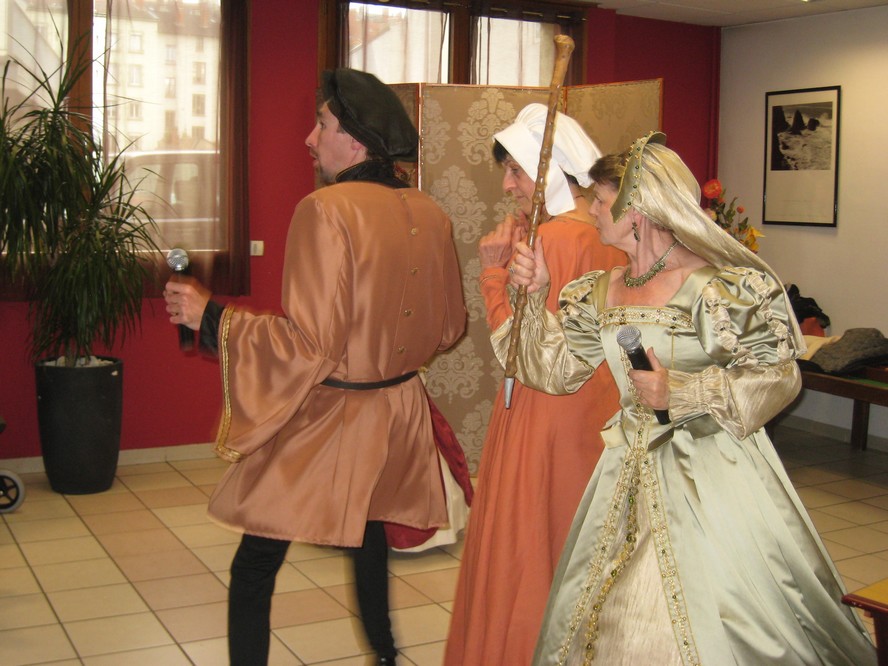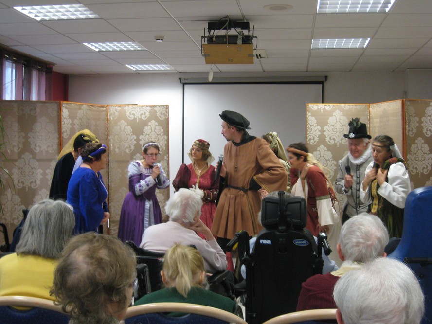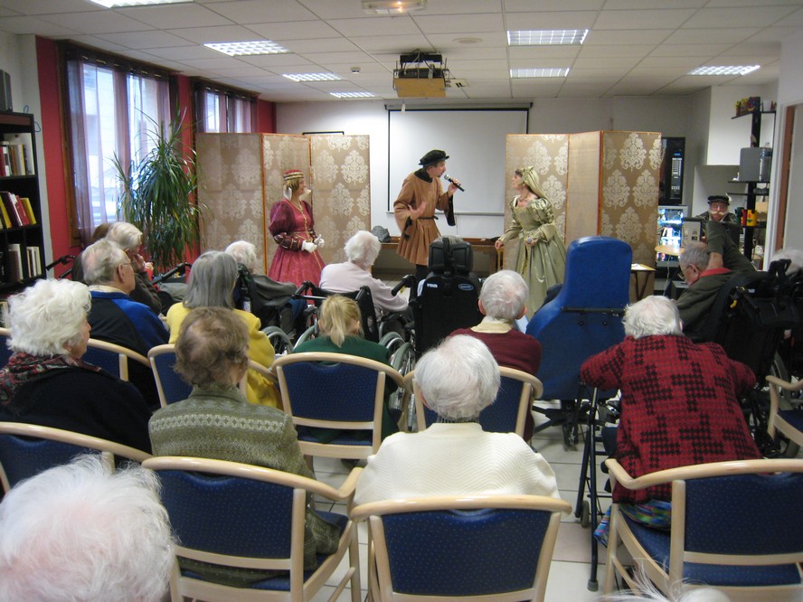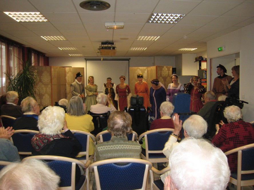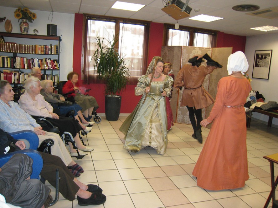 Le 15 octobre 2015, fidèles au rendez-vous de la « Semaine Bleue » qui honore chaque année nos aînés, les Pennons Baraban proposèrent aux résidents de l’établissement Orpéa-Gambetta un après-midi aux couleurs de la Renaissance : ainsi pavanes et farandoles animèrent étages et halls avant qu’une joyeuse farce ne vienne couronner ce chatoyant retour aux temps anciens.
