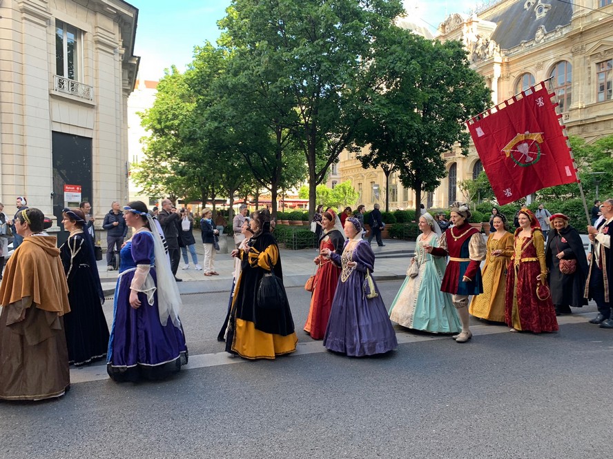 Défilé des Pennons de Lyon et des confréries , de la place de la bourse à la place de la comédie.