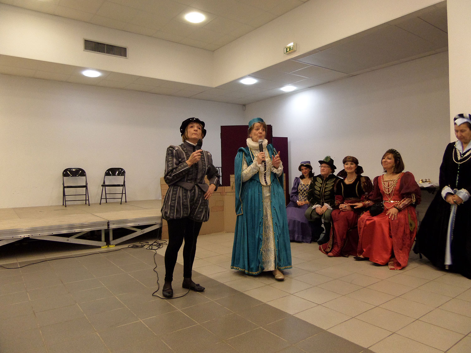 Cet événement convivial fut animé pour les malades et leurs proches par des danses et saynètes Renaissance . Présentation de la saynète :