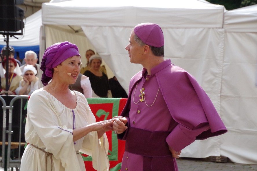 Saisissant si belle occasion de dévoiler enfin une face inédite de ses moult talents, le pennonage Baraban divertit un public tant nombreux que ravi, d’une riante farce d’inspiration médiévale : « Haro sur le benêt »