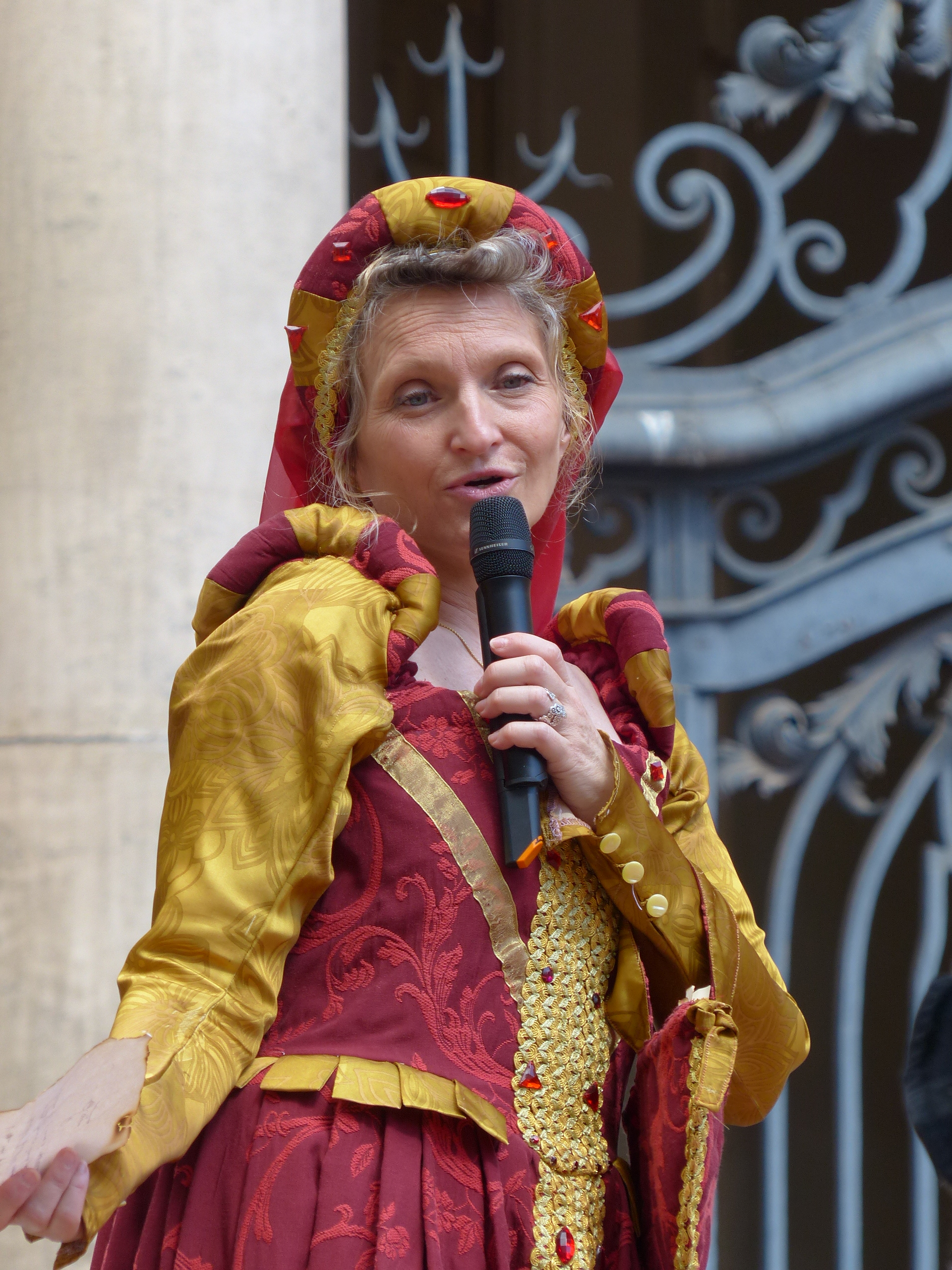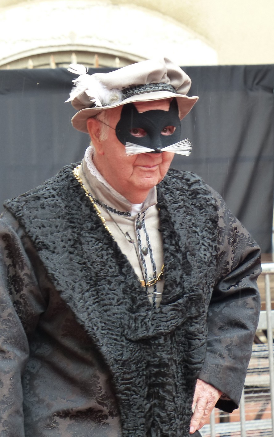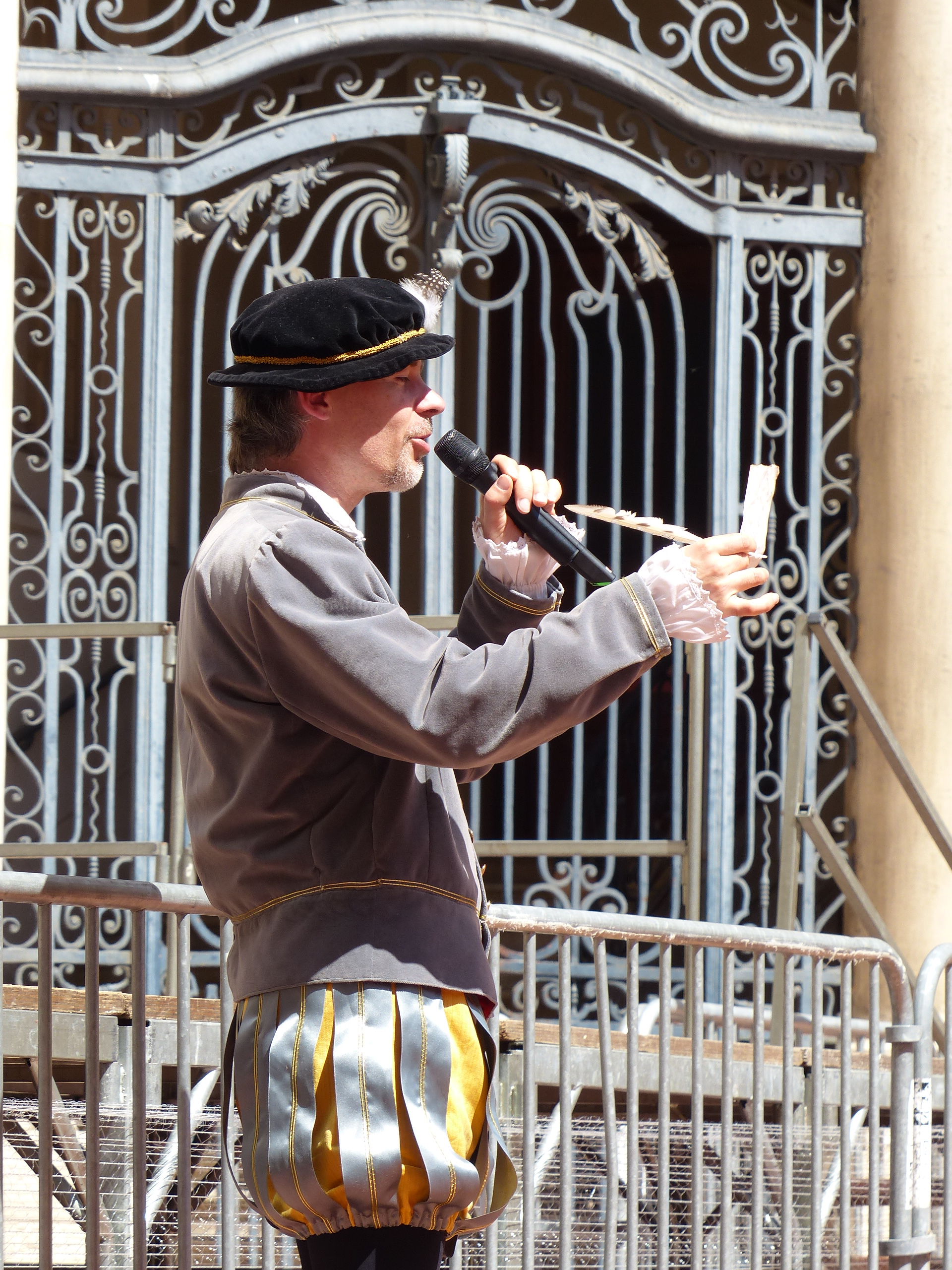 Puis en fin de journée, devant la cathédrale, notre troupe rejoignit les autres pennonages pour le spectacle anniversaire de la compagnie. « Jeux de vilains », offert à la foule innombrable, enchanta le public de ses péripéties autant qu’il l’éblouit par ses riches décors et fantasques costumes. Tel succès gravera pour longtemps dans les cœurs cet événement unique!