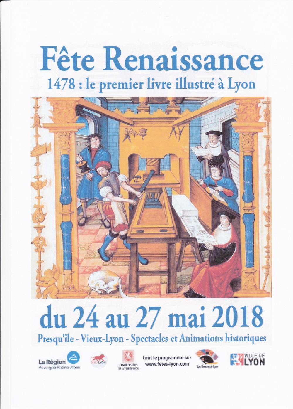 La Fête Renaissance les 26 et 27 mai 2018 , les pennons de Lyon fêtent l'imprimerie lyonnaise