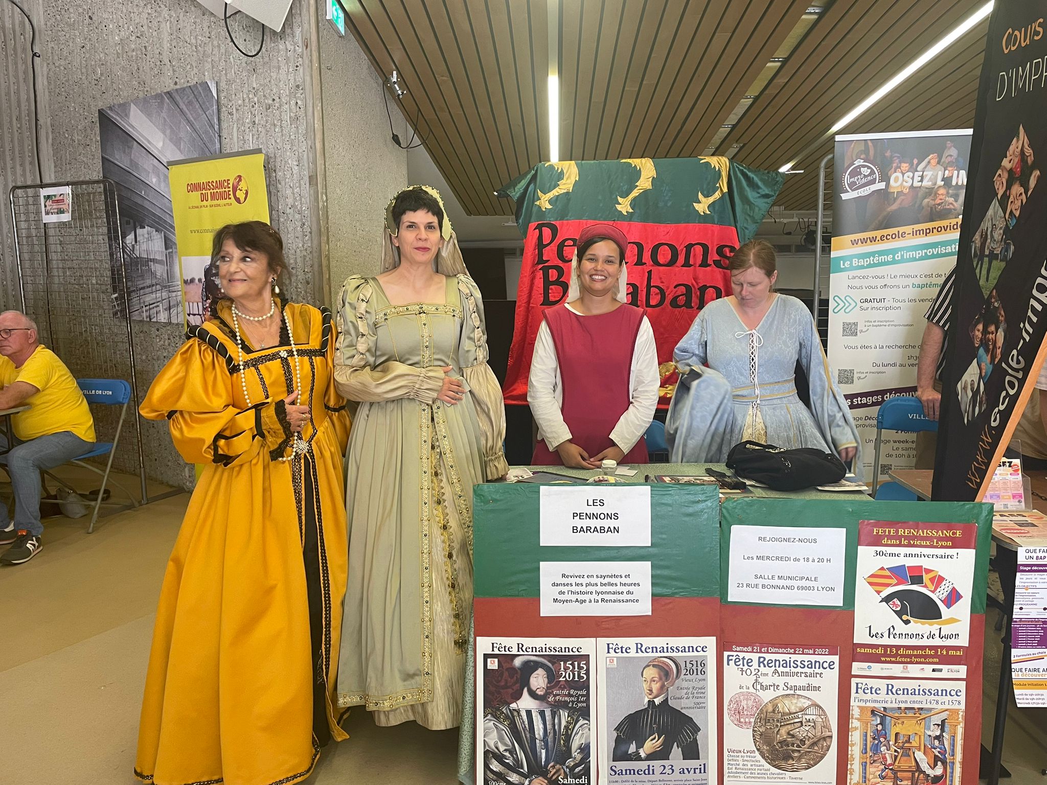 Immanquable rendez-vous des acteurs du lien social, le forum des associations accueillait cette année bénévoles et visiteurs à l’auditorium de Lyon, cadre prestigieux propice à mille rencontres, fructueux échanges et heureuses surprises. Le stand des Pennons Baraban, animé avec entrain par nos sémillantes commères en chatoyants costumes, sut séduire autant que captiver la foule enthousiaste des curieux