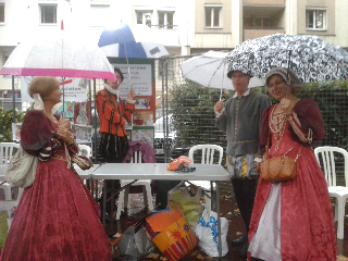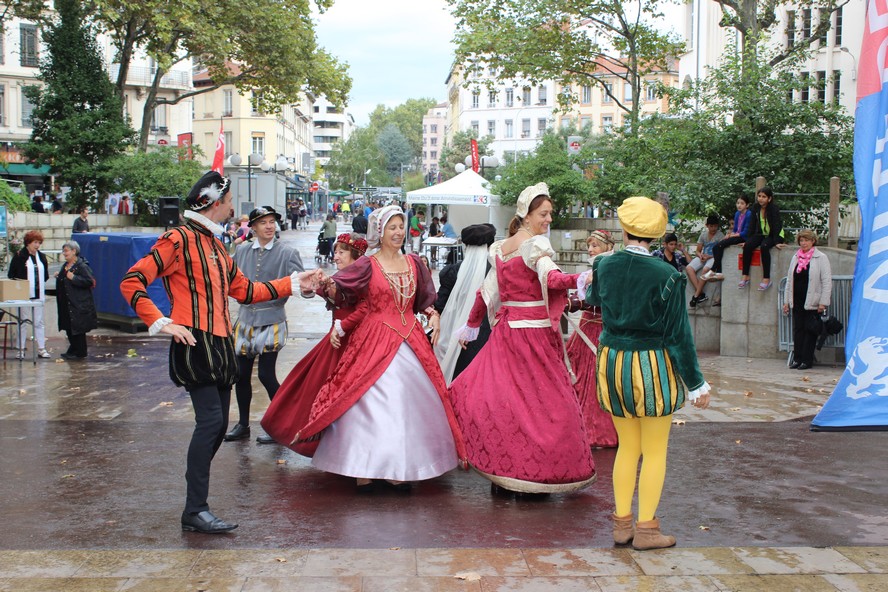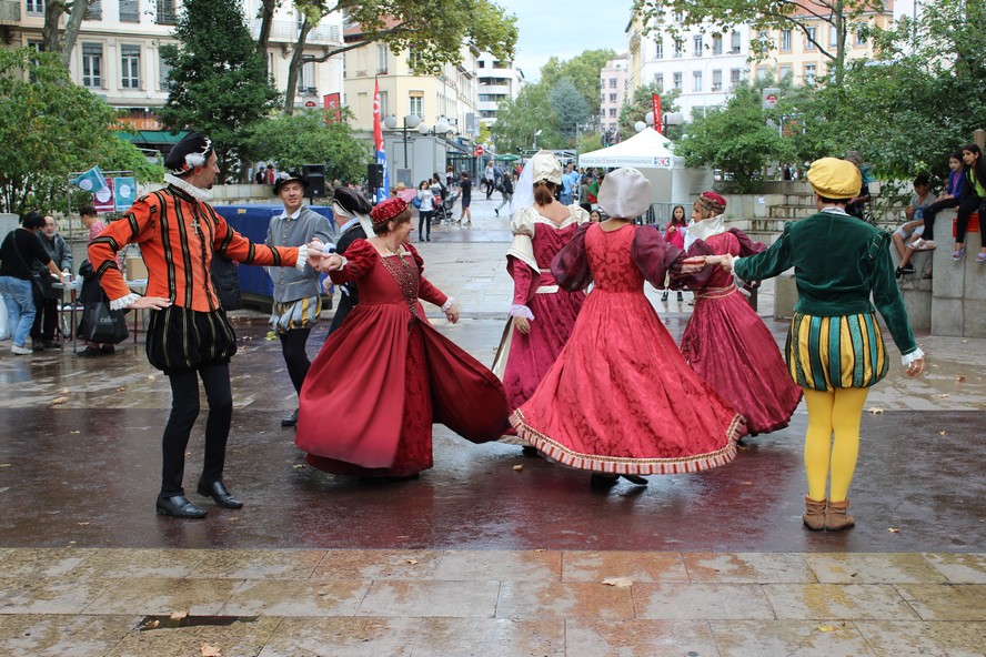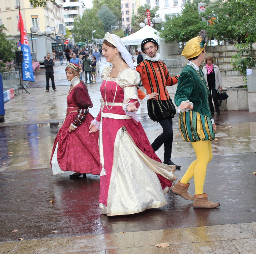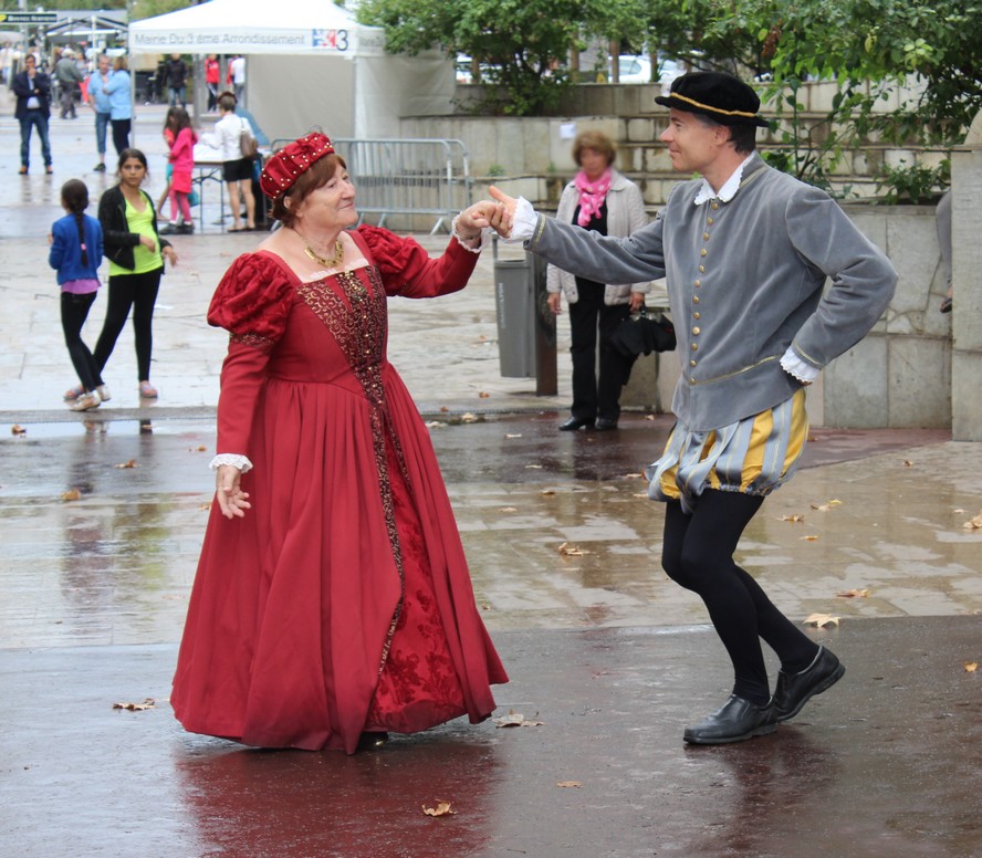 Profitant d’une éclaircie bienvenue, ils présentèrent aux badauds et membres des associations quelques danses Renaissance qui, si elles ne dissipèrent les nuages, éclairèrent un instant les visages.