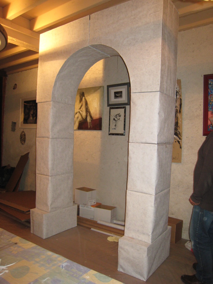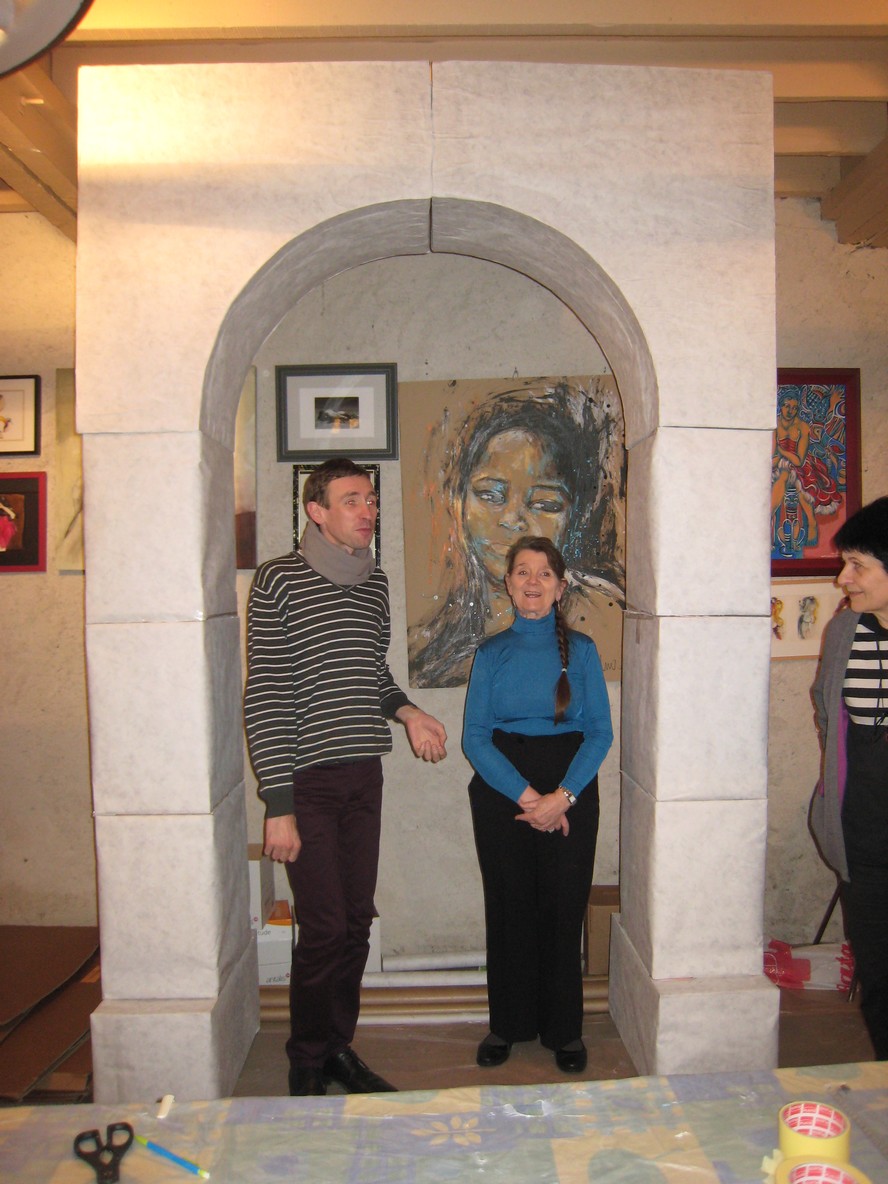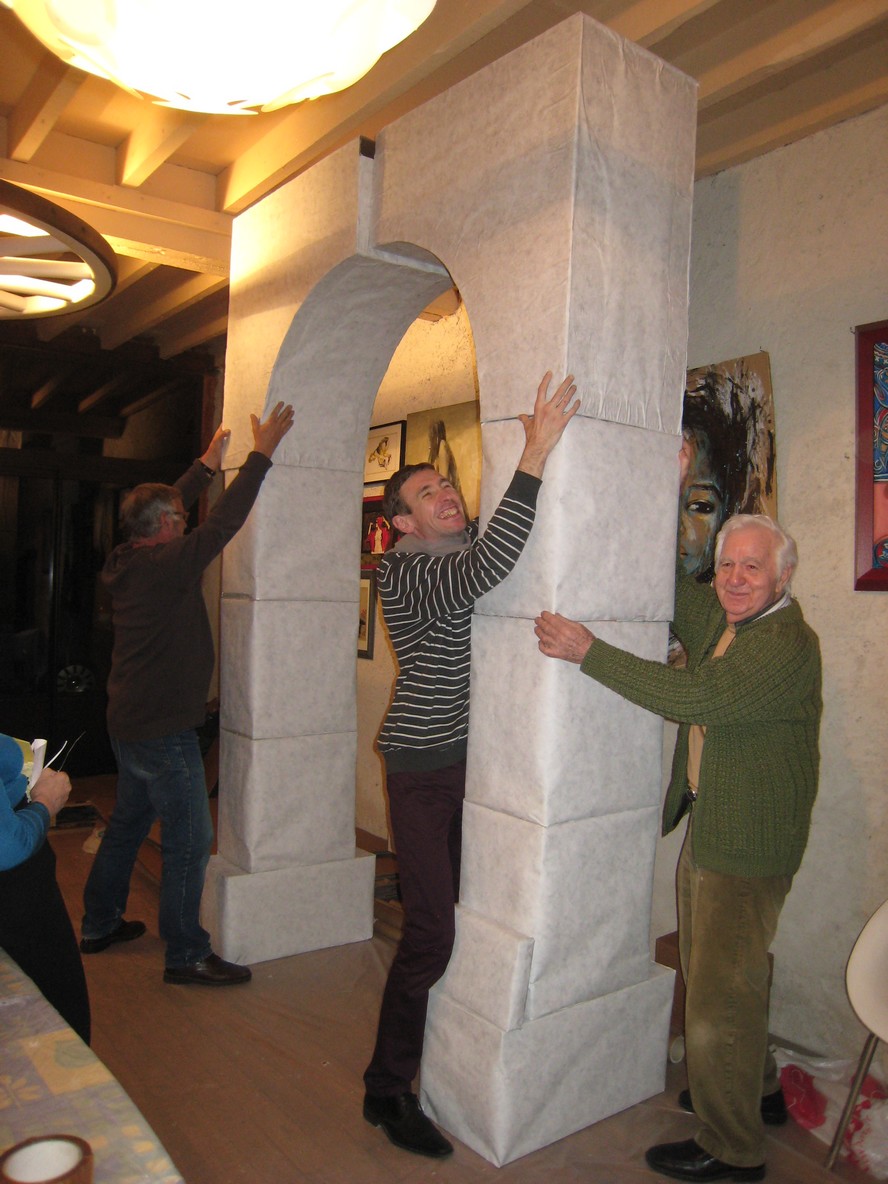 Jeu de construction, l’arche devra être montée au fond de l’espace scénique durant le dialogue de deux personnages en quelques secondes seulement !