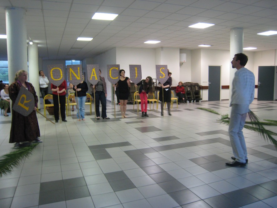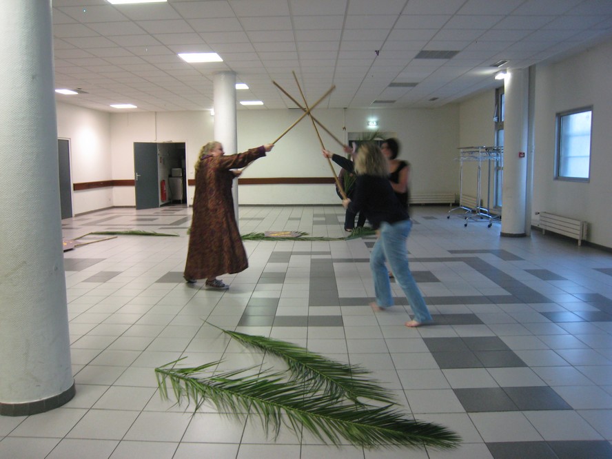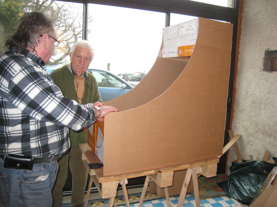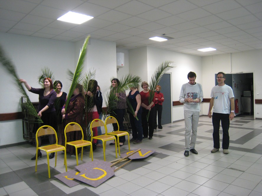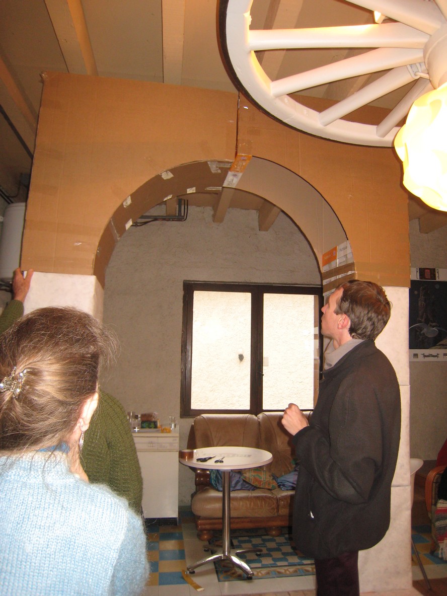 Jeu de construction, l’arche devra être montée au fond de l’espace scénique durant le dialogue de deux personnages en quelques secondes seulement !