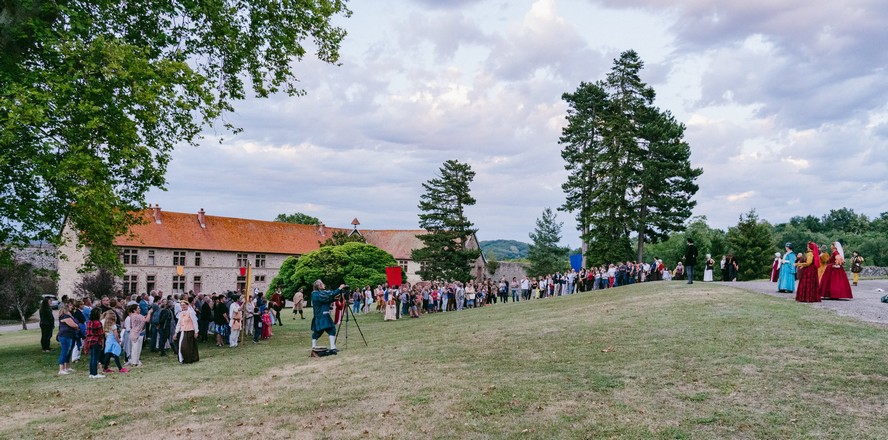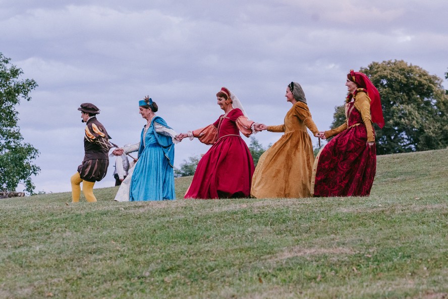Par des danses, chansons, saynètes et déambulations, les Pennons Baraban portent encore une fois haut et fort les grandeurs de la Renaissance dans un lieu prestigieux de notre Histoire de France.