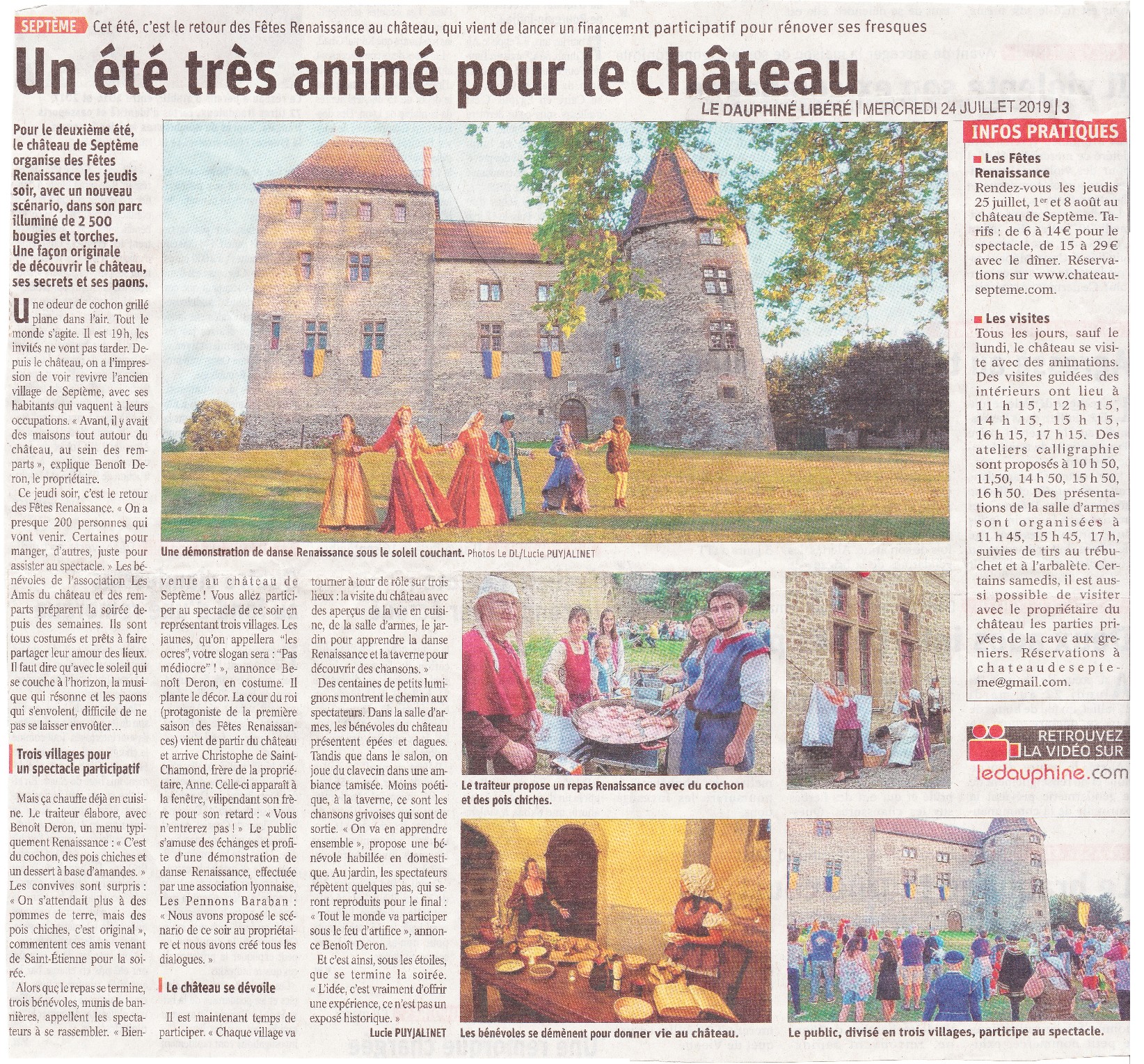 En partenariat avec les amis du Château de Septème et des Remparts, ils relatent les retrouvailles de Christophe De Saint Chamond avec Anne De Saint Chamond , comtesse de Grignan, châtelaine du Domaine de Septème , sa sœur.