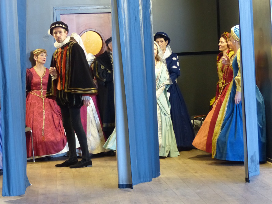 Puis entre mensonges , jeux de masques et galanteries, ils le transportèrent par une saynète riche en rebondissements, dans la luxueuse demeure d’une veuve éplorée en mal d’amour, jalouse de sa propre fille qui, courtisée par moult galants transis, lui fera bien trop d’ombre…