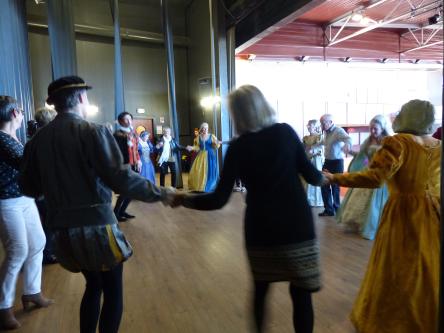 De retour à Mions, à l’invitation de l’association historique Mémoire Miolande pour animer l’après-midi de son rassemblement annuel , les Pennons Baraban réjouirent leurs hôtes et hôtesses de danses Renaissance: du branle Baraban à l’Allemande d’Amour, ils conquirent un public enchanté.