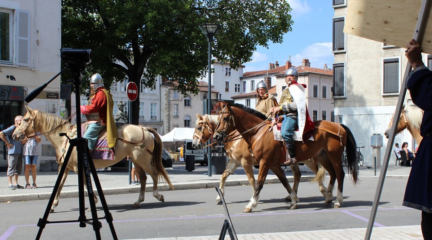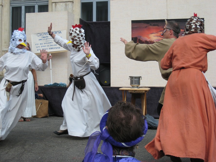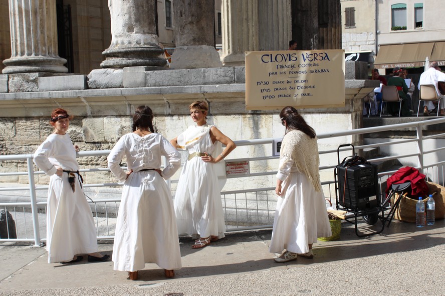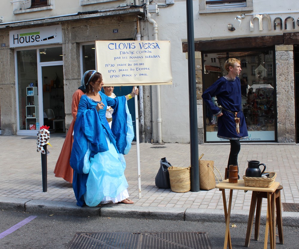C’est en effet Clovis que la si belle fête historique de Vienne mettait cette année à l’honneur. Lors de places en ruelles et de l’aube au coucher, nos fringants saltimbanques animèrent la cité d’une inédite fable dont les échos rieurs coururent le long des murs des temples vénérables.